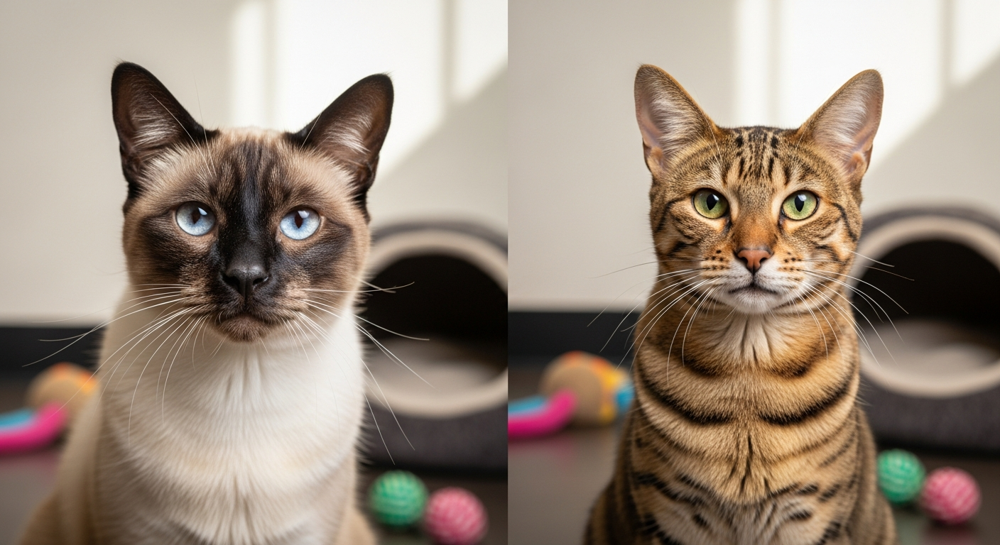 De Siamees en OKH zijn slanke, actieve katten met een snelle stofwisseling. Ontdek wat de beste voeding is, hoeveel je geeft en hoe je een gezond gewicht behoudt.